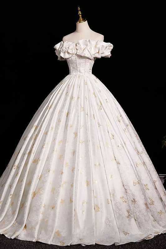 Beautiful Butterfly Print Satin Long Prom Dress, A-Line Off the Shoulder Evening Party Dress
