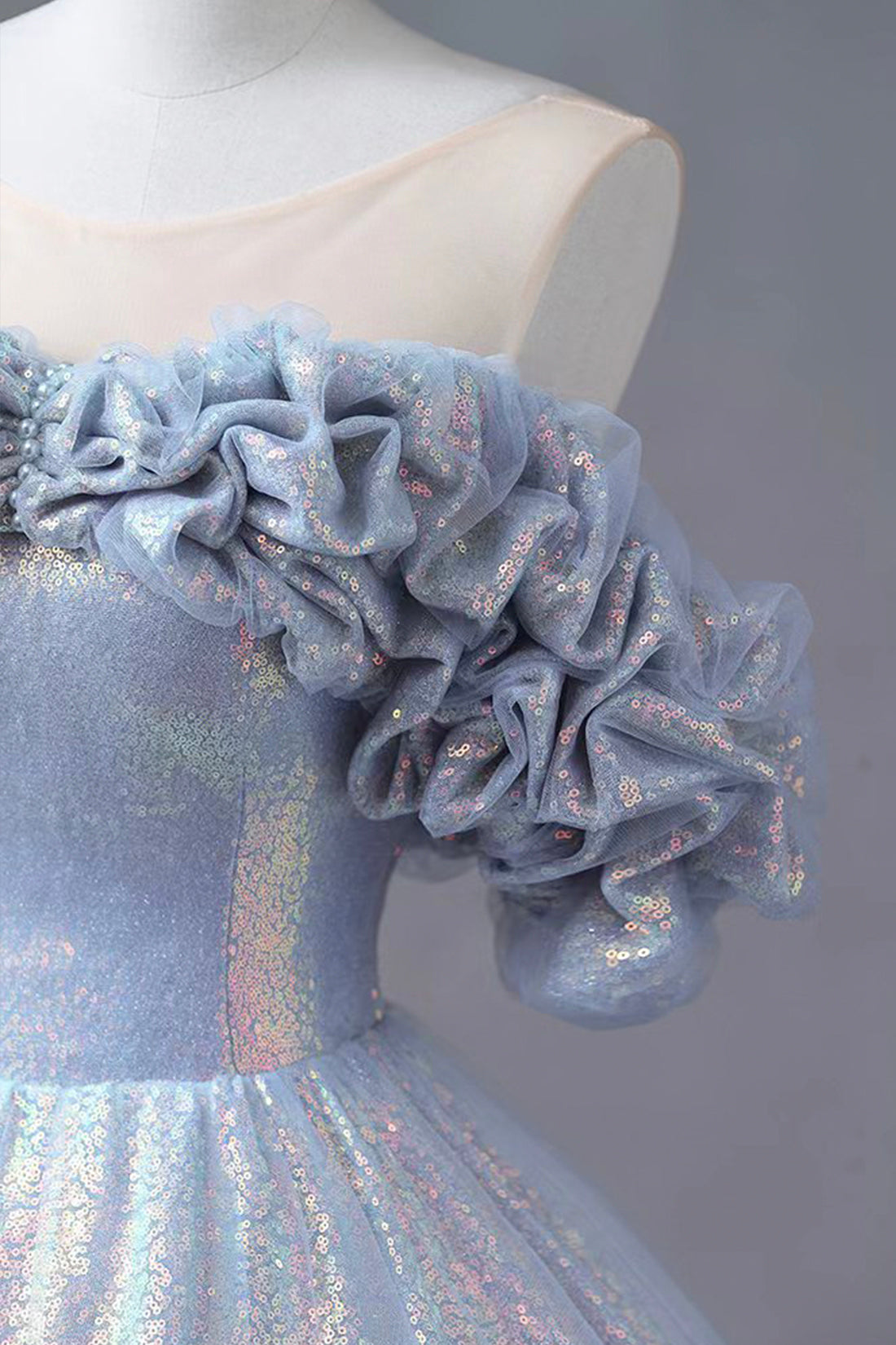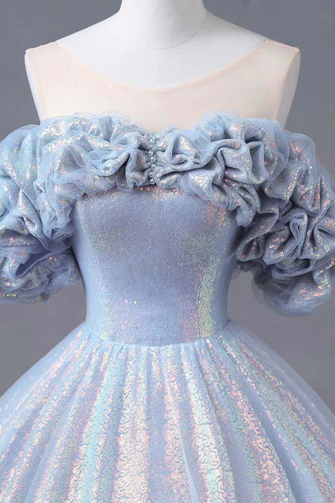 Shiny Tulle Sequins Long Floor Length Prom Dress, Off the Shoulder Evening Party Dress